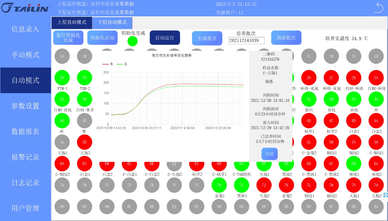 报告中指出,十三五国家重大科技专项成果全自动无菌培养系统AST-300和AST-80是专用于药品快速无菌检查的智能化仪器,由恒温培养箱体,自动化检测单元、培养容器、微生物生长信号感应器等组成。其原理是基于微生物呼吸作用产生的CO₂,引起培养容器上感应器颜色的改变,通过设备的视觉相机连续扫码感应器图像及对应二维码,由计算机系统进行视觉分析并转换为生长信号,根据变化趋势分析及专用的算法来判断无菌检查结果。