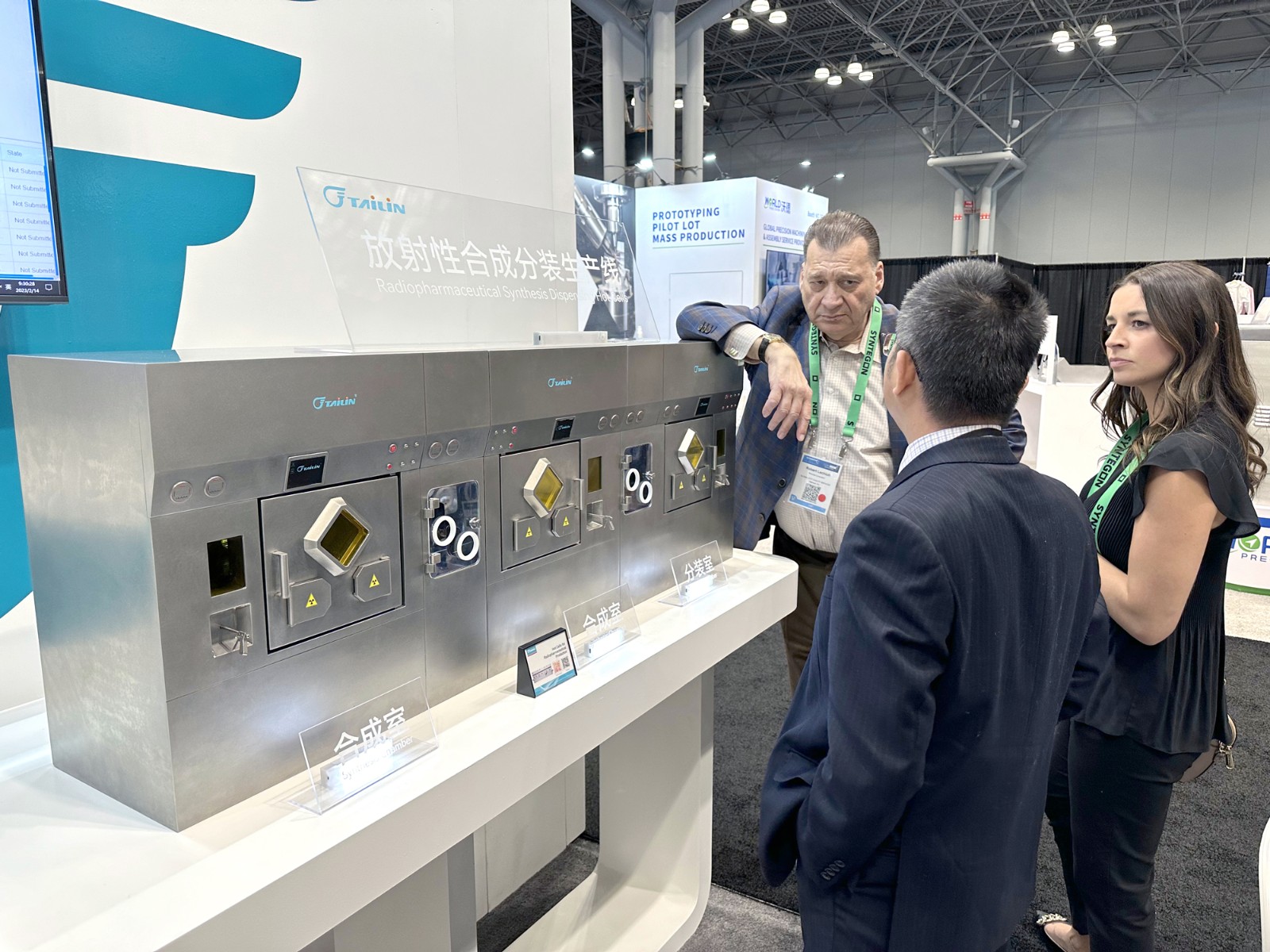 作为制药装备领域专业厂商,泰林生物此次携新品医用同位素热室首次亮相海外展会,为放射性药品生产提供满足行业最高标准的系统化解决方案,引领安全高效的核药生产。其独特的设计、高效的性能以及卓越的安全保障,受到了与会者的广泛关注。