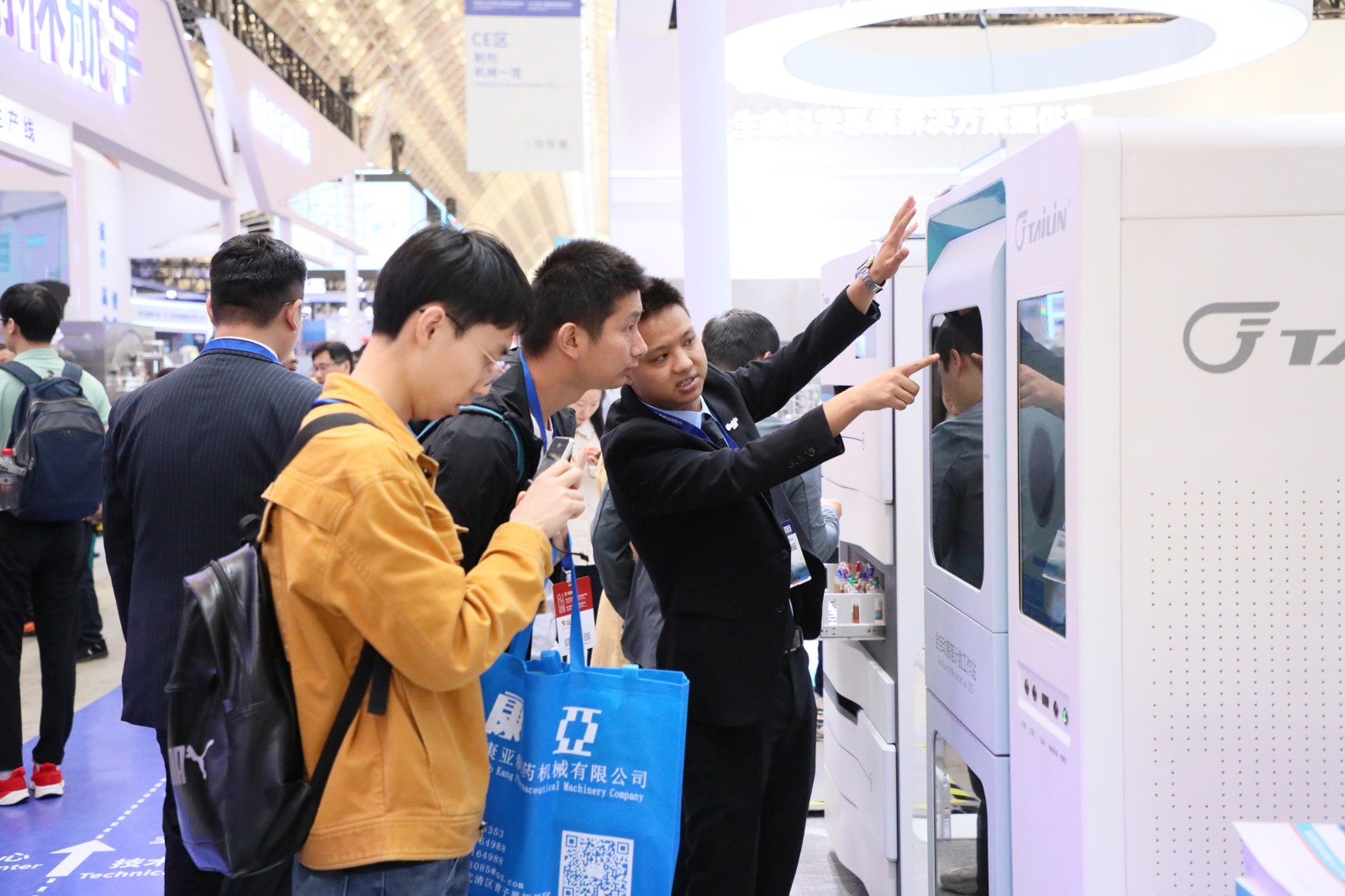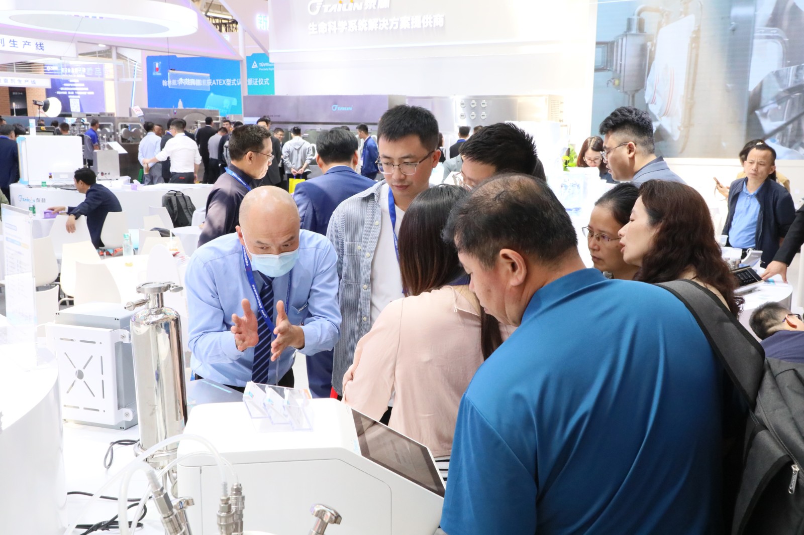 展会期间,络绎不绝的观众聚集泰林生物展位,我们的工作人员全程提供专业的讲解服务,与现场各位专家学者、各企事业相关人员,多角度探讨制药装备行业发展趋势和最新的技术应用,为制药生产提供更加安全、高效和可靠的建设思路。