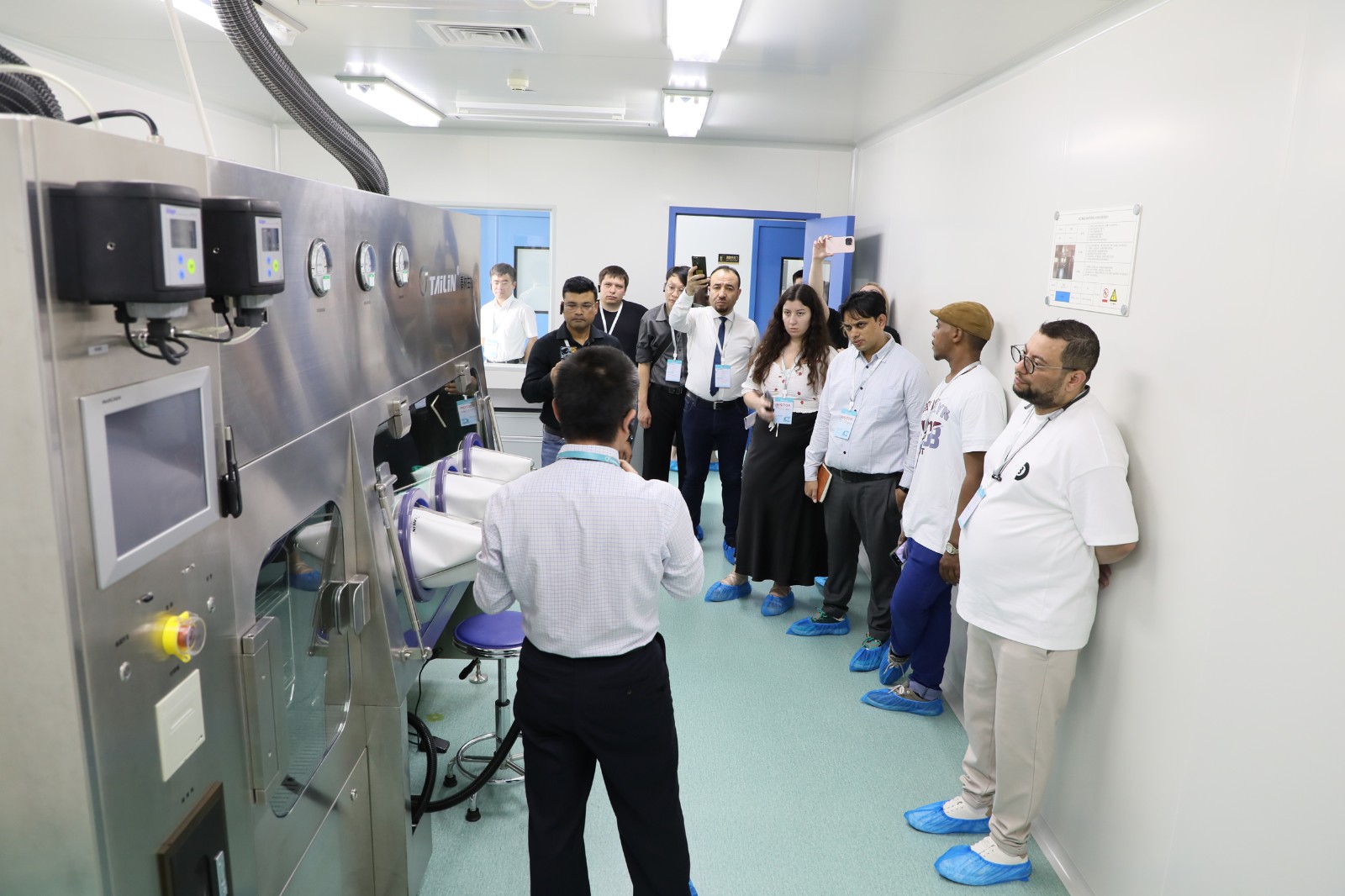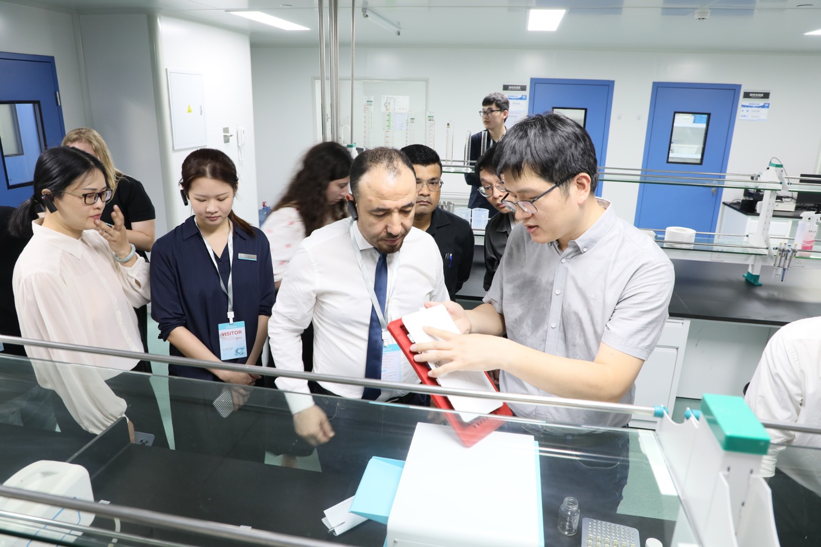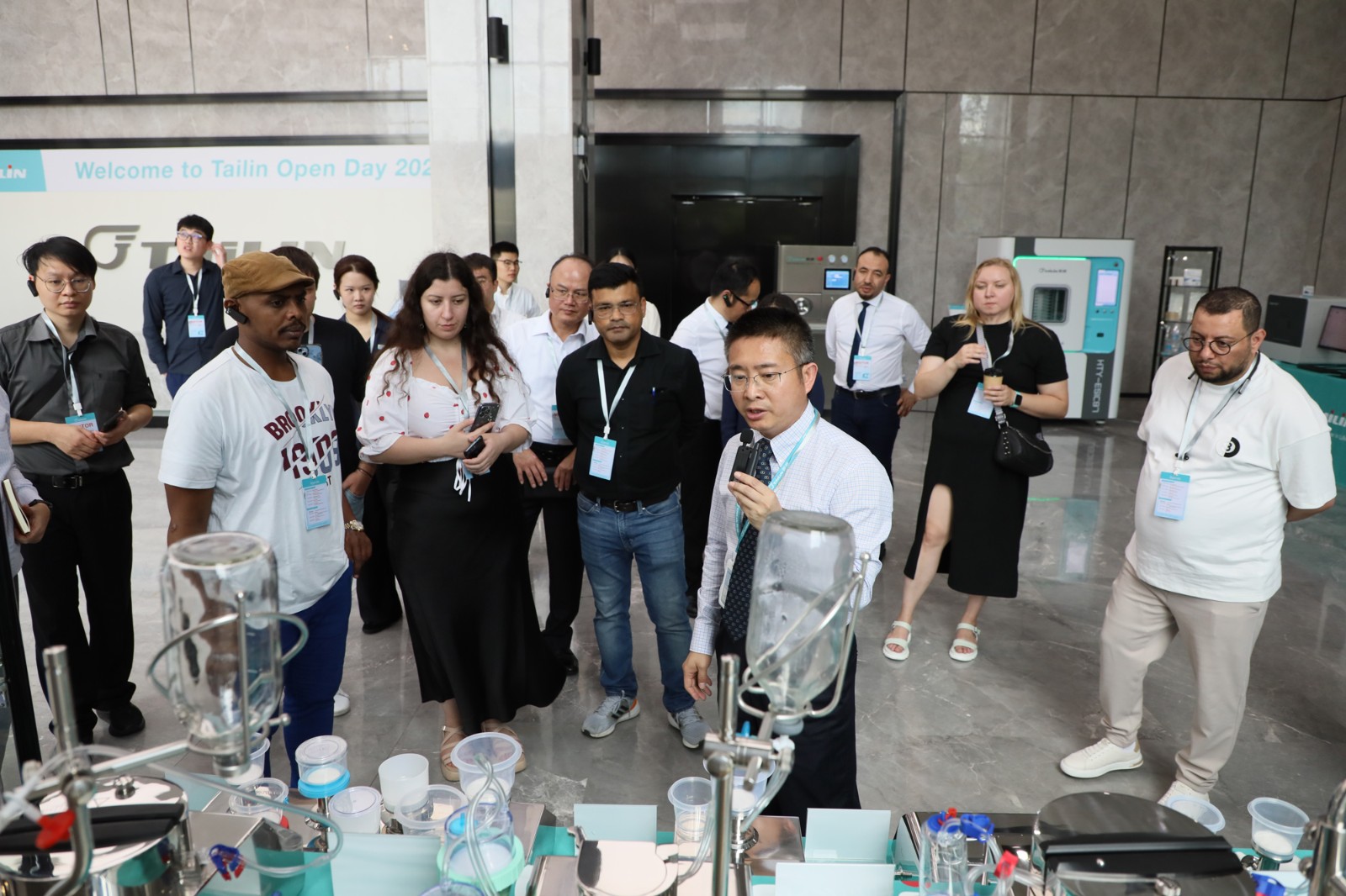 海外客户在泰林生物相关负责人以及专业技术人员的陪同下, 先后参观了泰林医学工程园区和泰林生命科学园区。在制药设备生产区、细胞制备区,海外客户看到了泰林生物在制药装备加工制造技术上的强大交付能力;在实验中心、膜技术生产车间、微检耗材生产区、医学工程创新产品展示区、生命科学展厅产品区等地,海外客户看到了泰林生物丰富的产品系列和解决方案以及背后雄厚的研发实力。