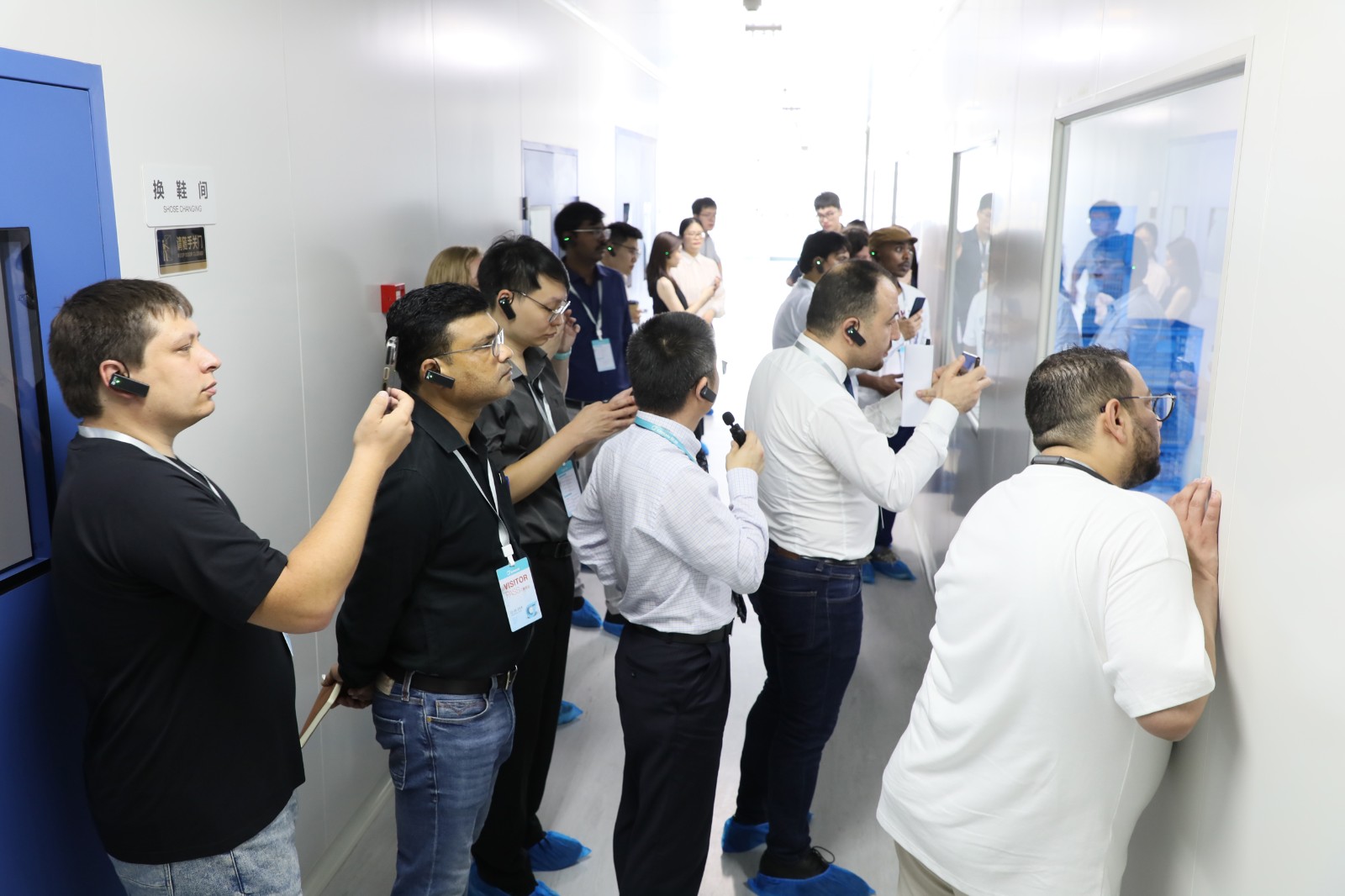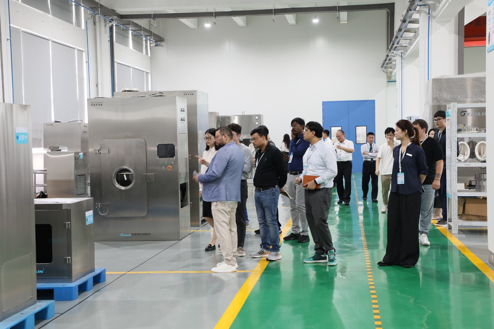 创新与高效的交响,离不开匠心的坚守。在工厂参观环节,海外客户实地深入了解无菌隔离技术、细胞与基因制备生产、智能微生物检测、核药药品无菌制备、无菌检测、微生物检测、膜过滤等领域重点产品生产制造的各个环节。在这里,领先的自动化产线、先进的加工设备、绿色高效的制造体系不断映入眼底,全方面、多维度展示着泰林生物对产品全生命周期的严格把控。海外客户对泰林生物规模化的制造实力赞不绝口,更坚定了对泰林生物旗下产品的信心,期待后续对接更多项目的合作。