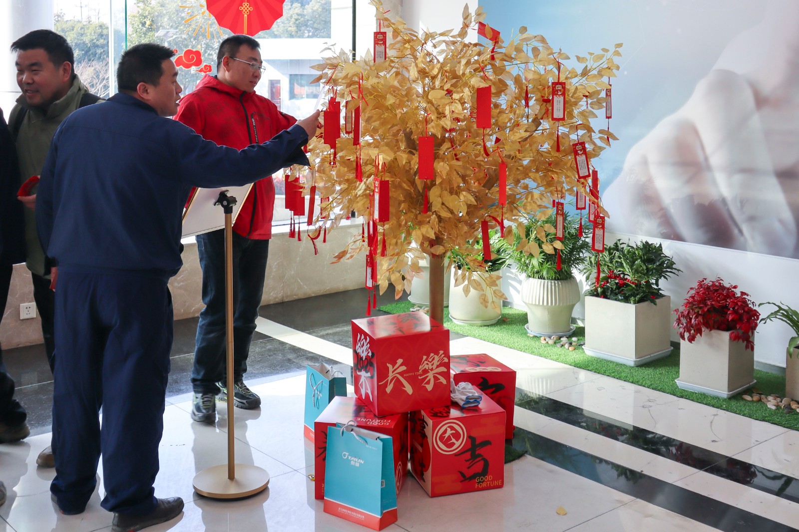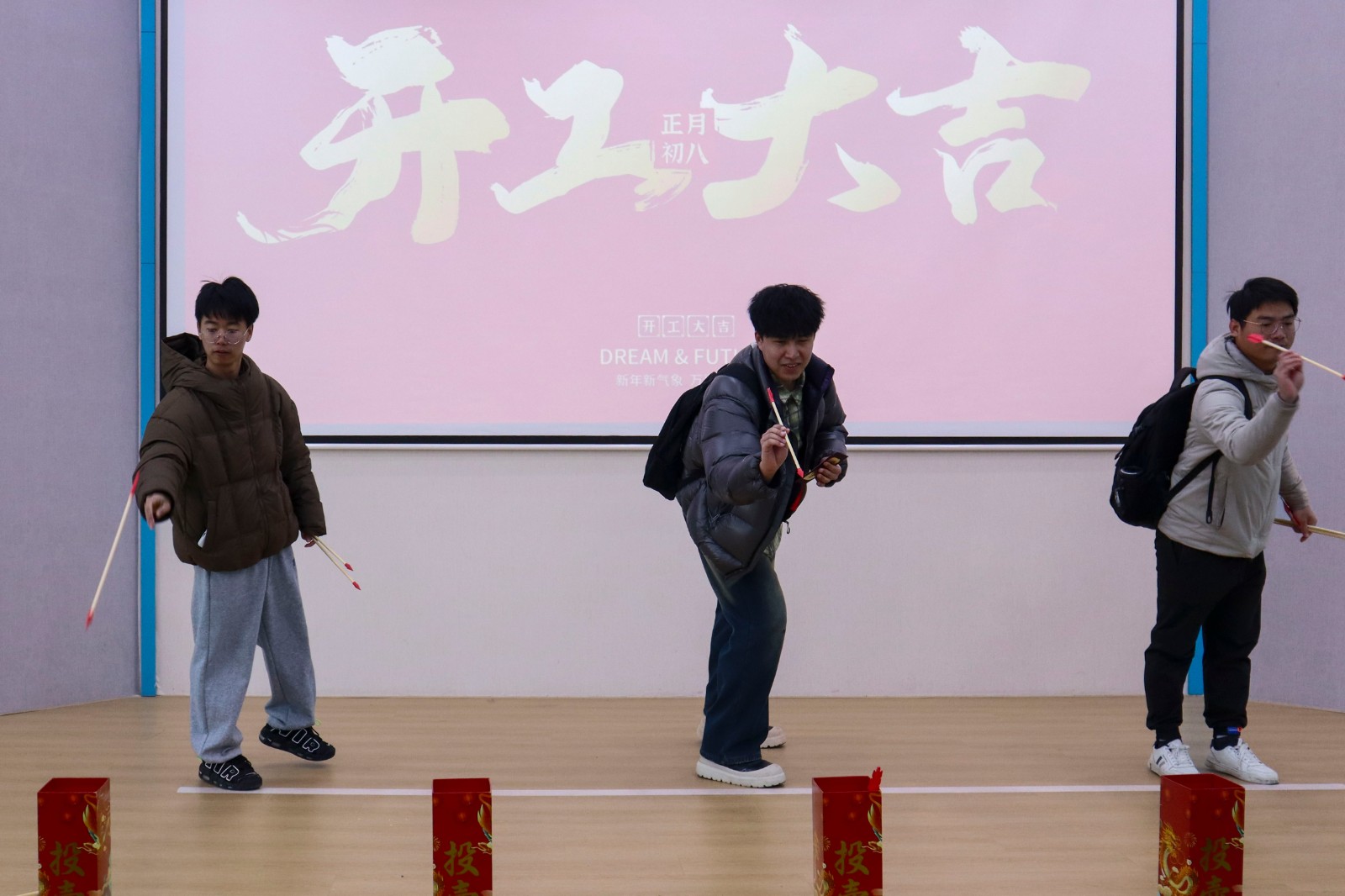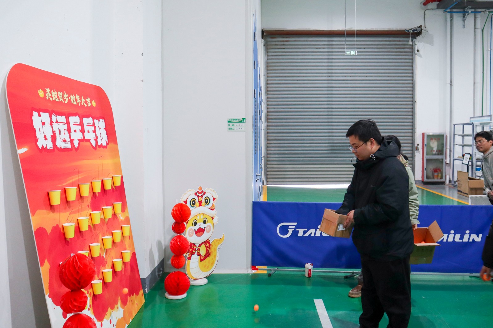 此外,各个园区还举办了趣味活动,幸运红包墙、好运乒乓、猜字谜、投壶、朋友圈集赞,内容丰富,奖品多样。在紧张刺激的游戏环节,欢呼声此起彼伏,现场气氛热烈非凡,大家通过努力获得了心仪的奖品,为新的一年增添了一份好运和喜悦。