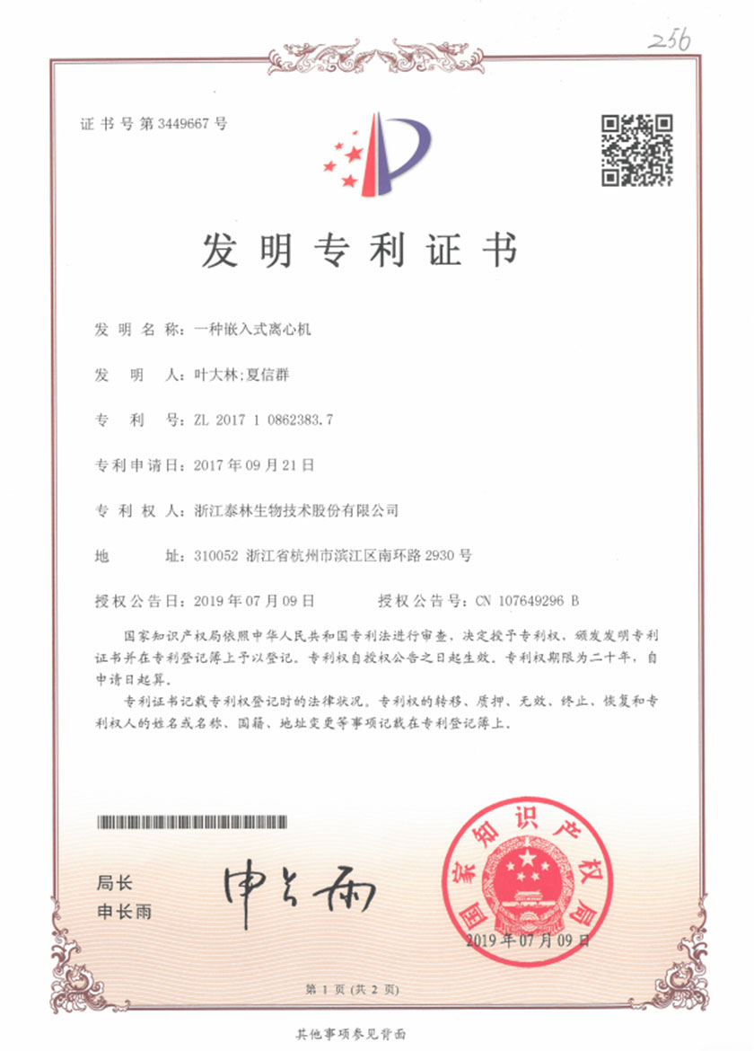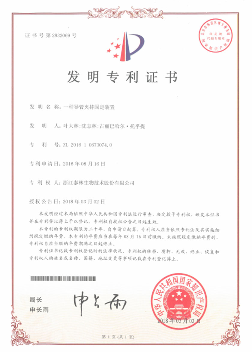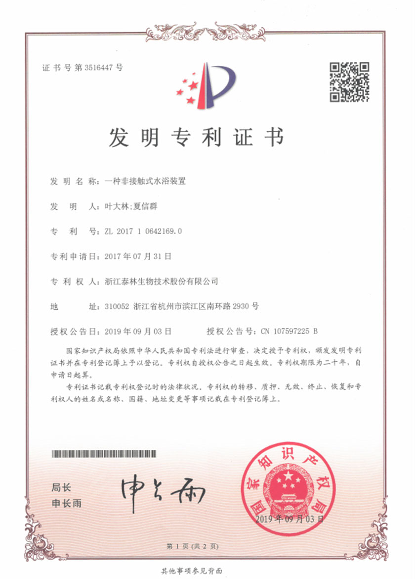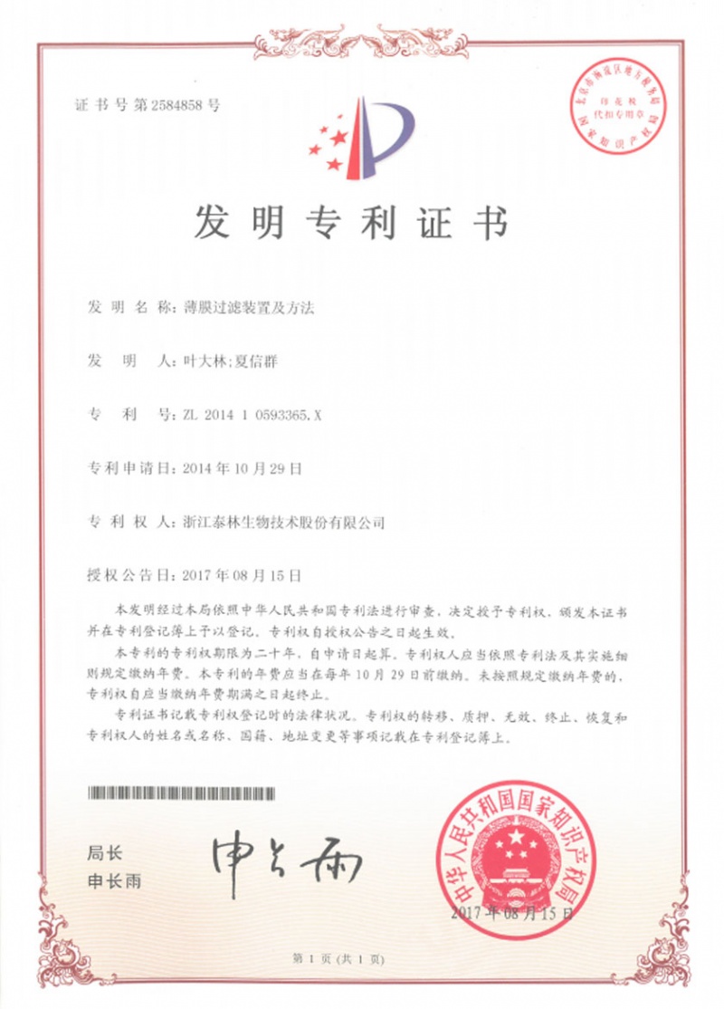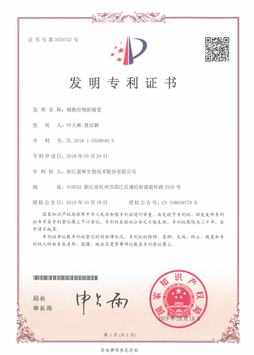 泰林生物拥有国家专利200多项,其中发明专利19项 。