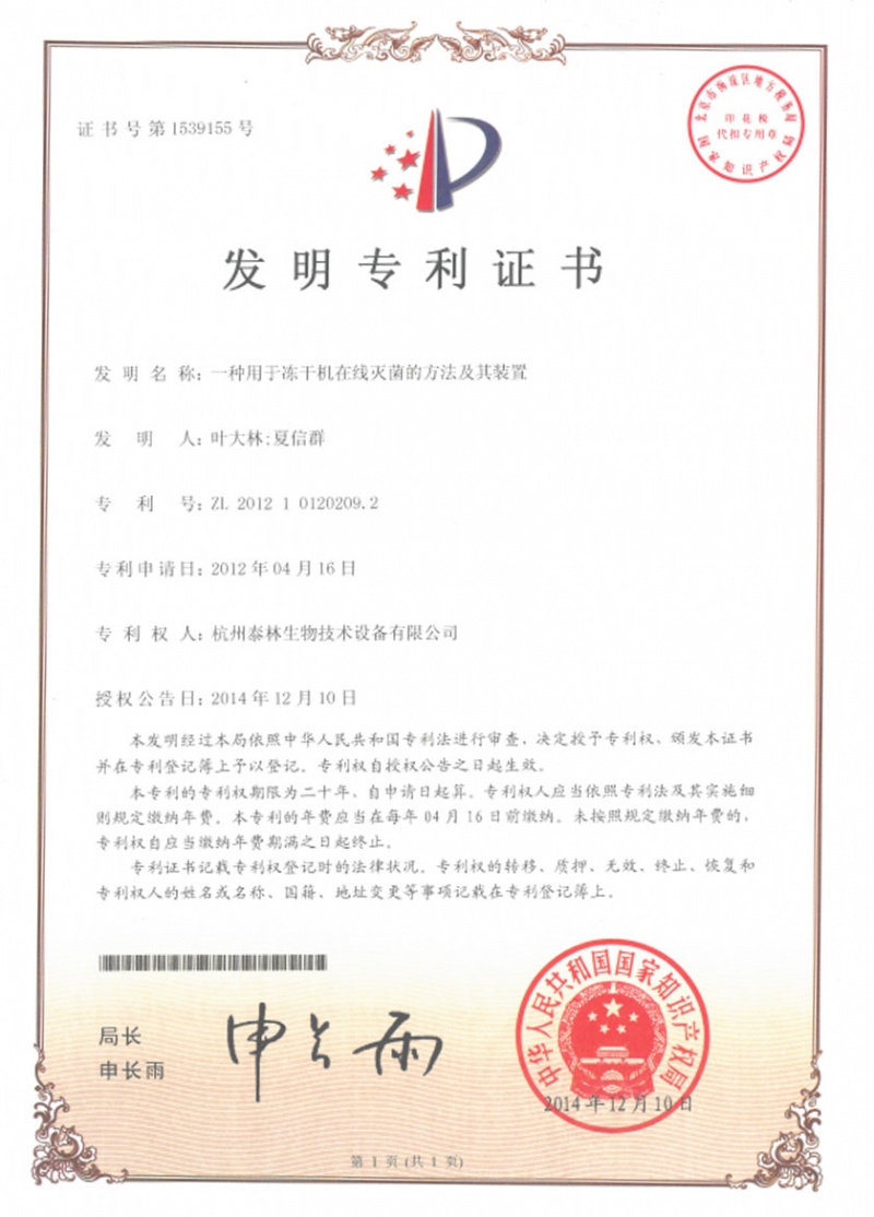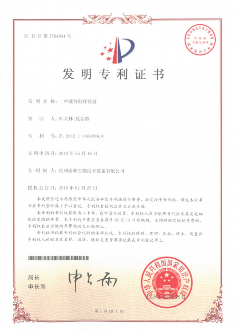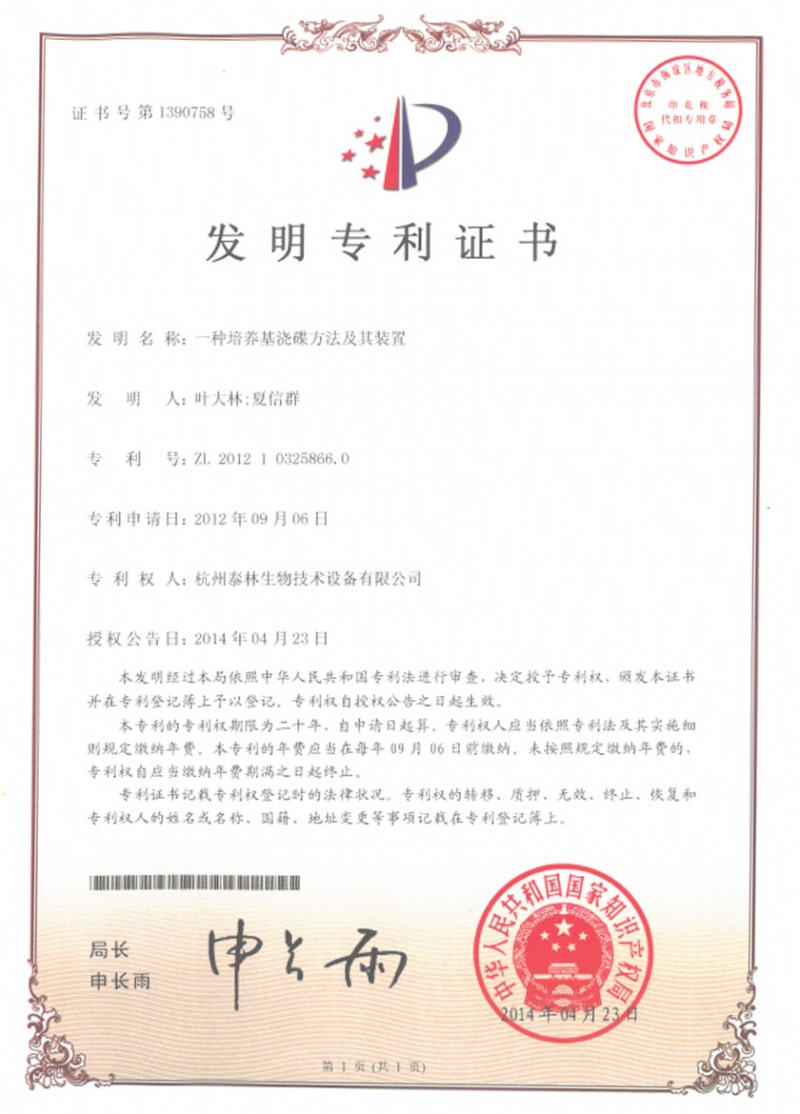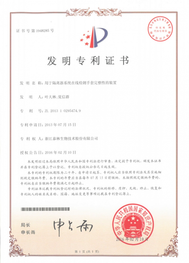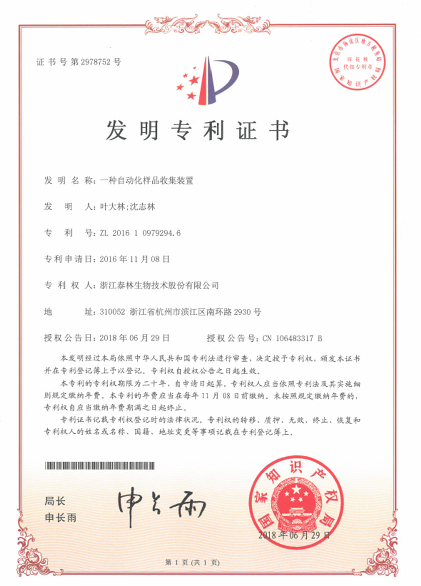 泰林生物拥有国家专利200多项,其中发明专利19项 。